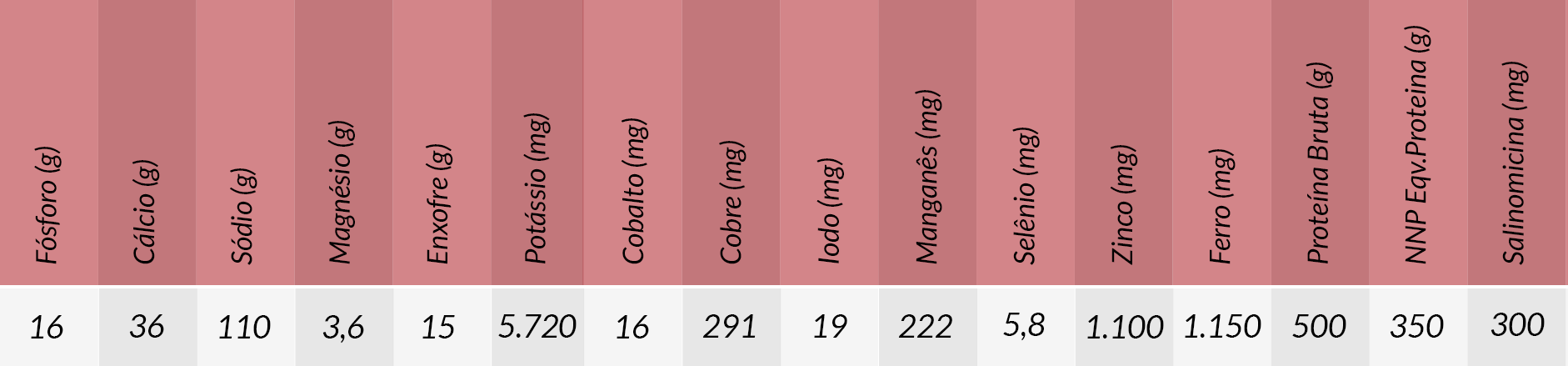 Consumo estimado: 0,1% - 0,15% do peso corporal (peso vivo) por dia.