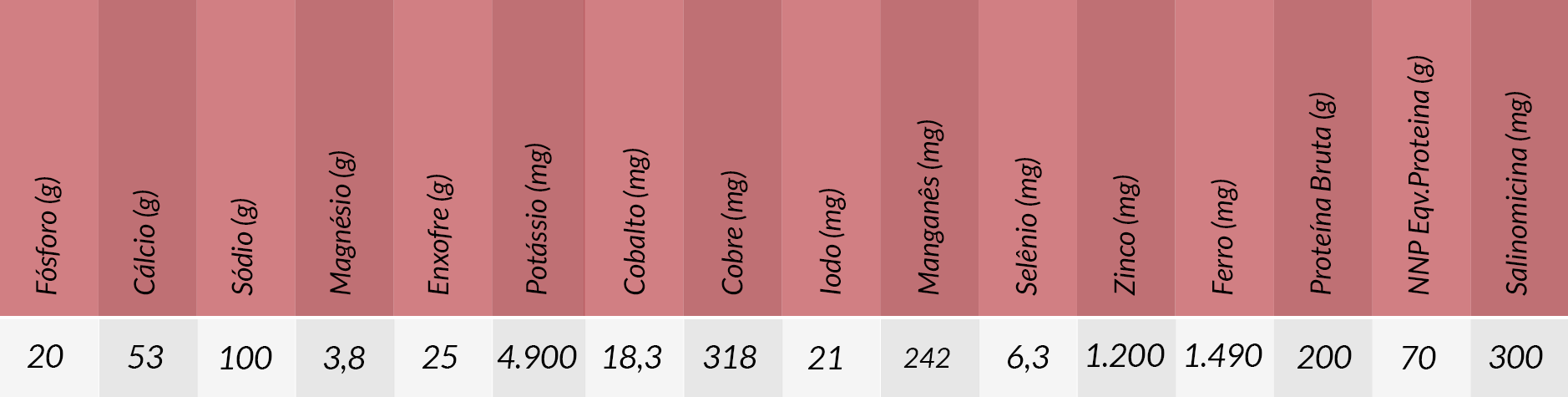 Modo de uso: Produto de pronto uso que deve ser fornecido à vontade em cochos preferencialmente cobertos. É indicada a renovação nos cochos a cada dois dias. Para viabilizar o acesso de todos os animais ao suplemento, respeitar espaçamento mínimo de 2,0 cm lineares por cabeça.