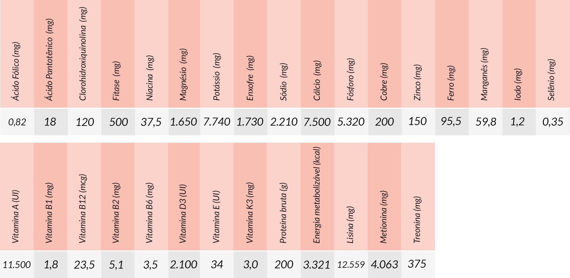 Modo de uso: Produto de pronto uso. Na fase de creche, fornecer à vontade, em comedouros adequados, para máximo desempenho.