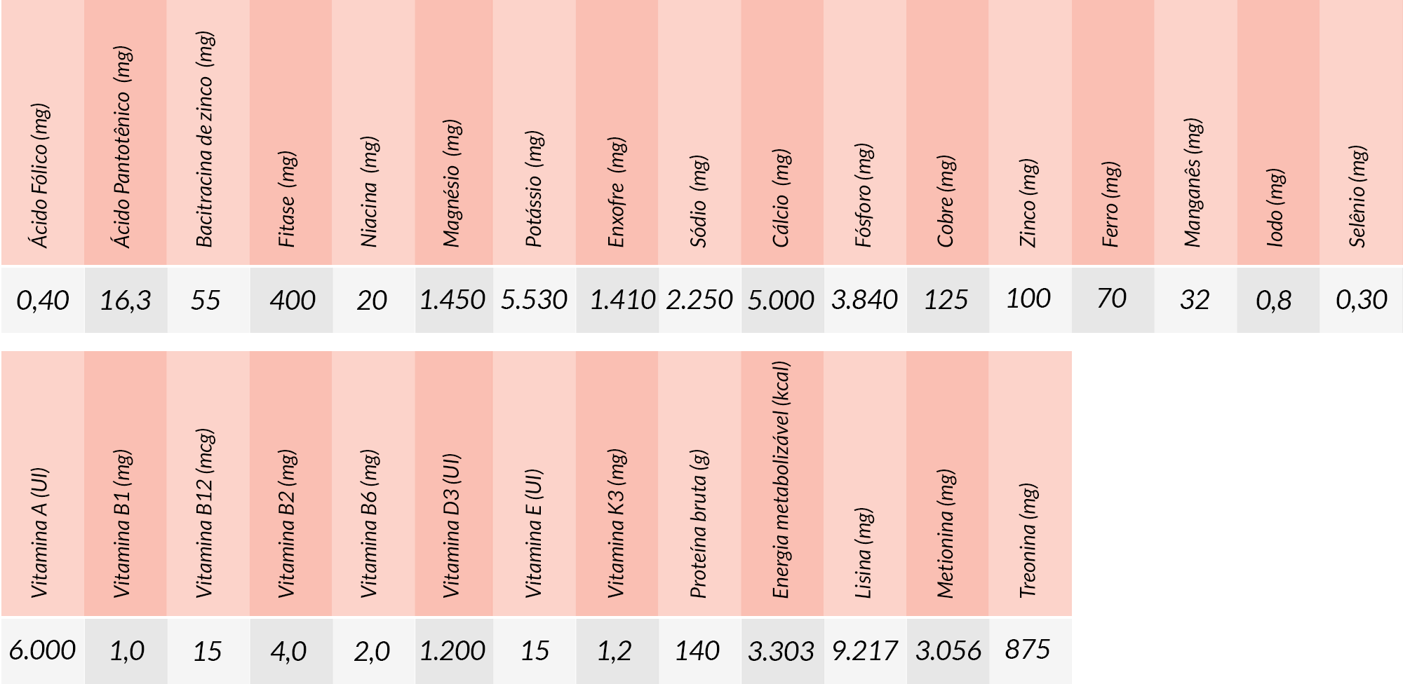 Modo de uso: Produto de pronto uso. Na fase de crescimento, fornecer à vontade, em comedouros adequados, para máximo desempenho.