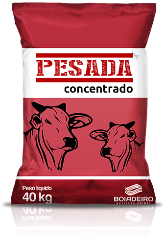 Modo de uso: Produto para diluição. Para rações com 20 % de proteína bruta, misturar 15% de PESADA CONCENTRADO com 85 % de milho moído fino. Para rações com 18 % de proteína bruta, misturar 12 % de PESADA CONCENTRADO com 88 % de milho moído fino. O produto da mistura deve ser fornecido diariamente na proporção de 0,8 a 1,5 % do peso corporal ou conforme recomendação técnica. Fornecer em cochos preferencialmente cobertos ou com sistema que evite o acumulo de água, com espaçamento mínimo de 50 cm lineares por unidade animal.