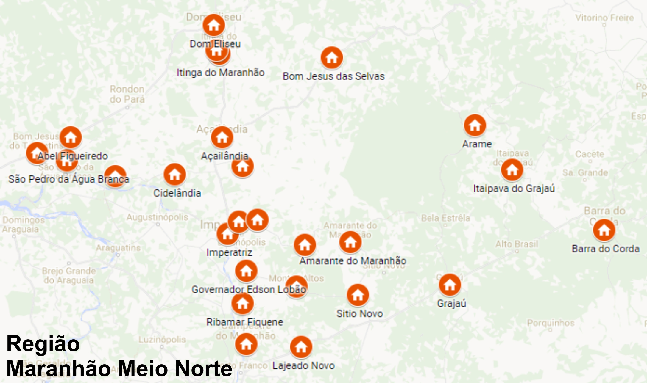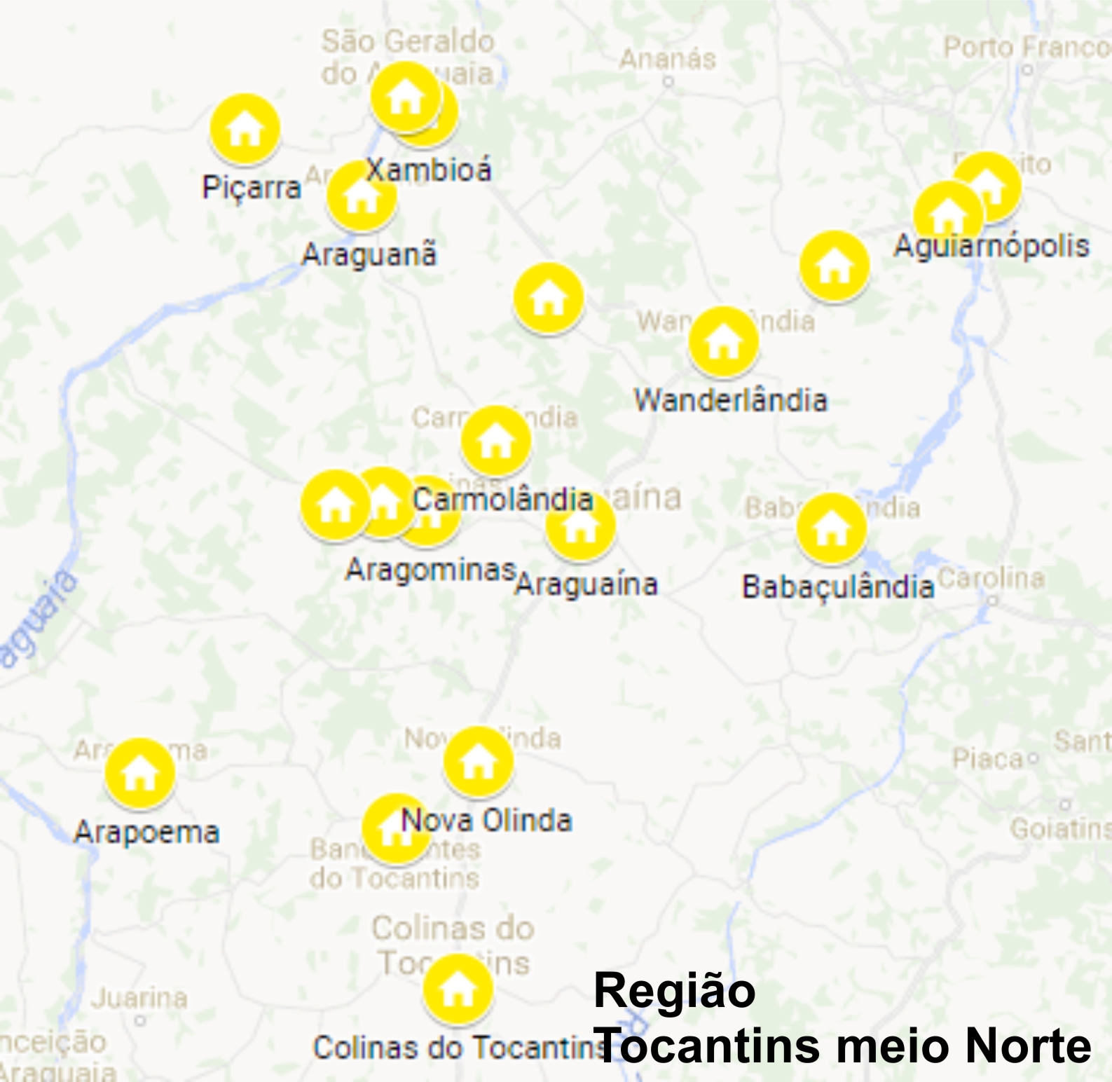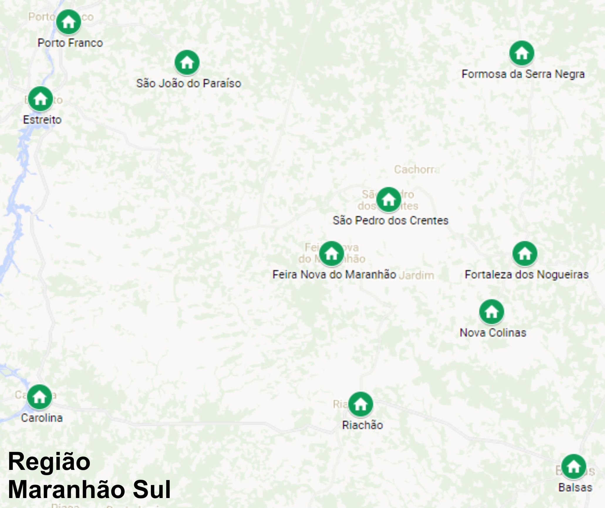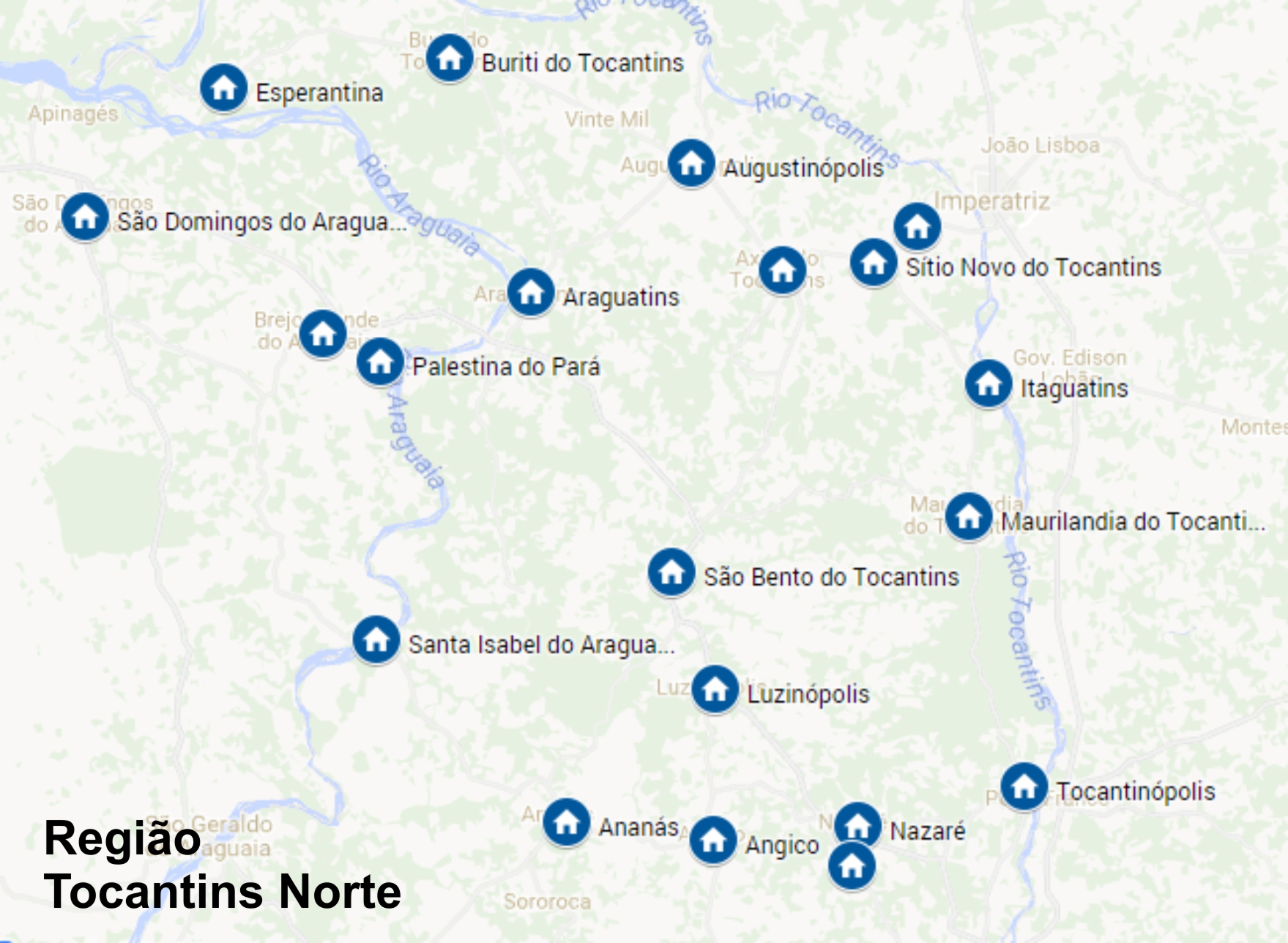 Regiões: Tocantins Norte, Tocantins Meio Norte, Maranhão Meio Norte e Maranhão Sul (ver imagens).